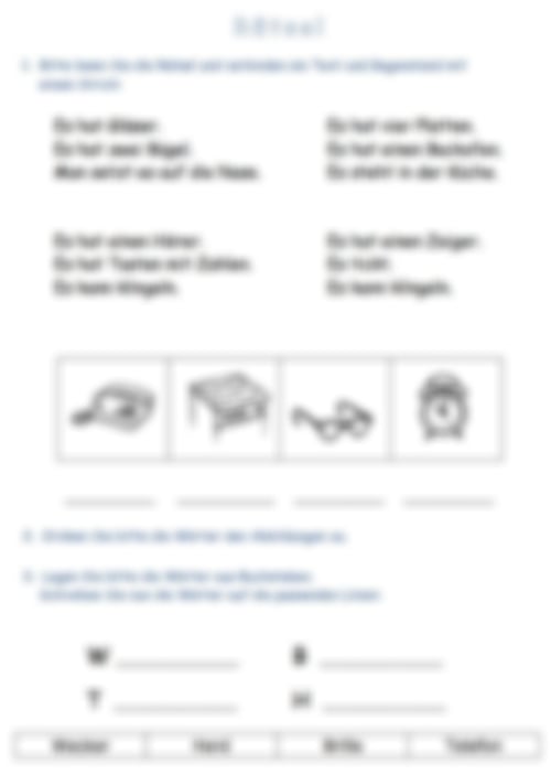 Hier ist ein Beispiel für ein Übungsblatt für jemanden, der kaum Wörter äußern kann und viel Konzentration braucht um gesprochene Sprache zu verstehen:
